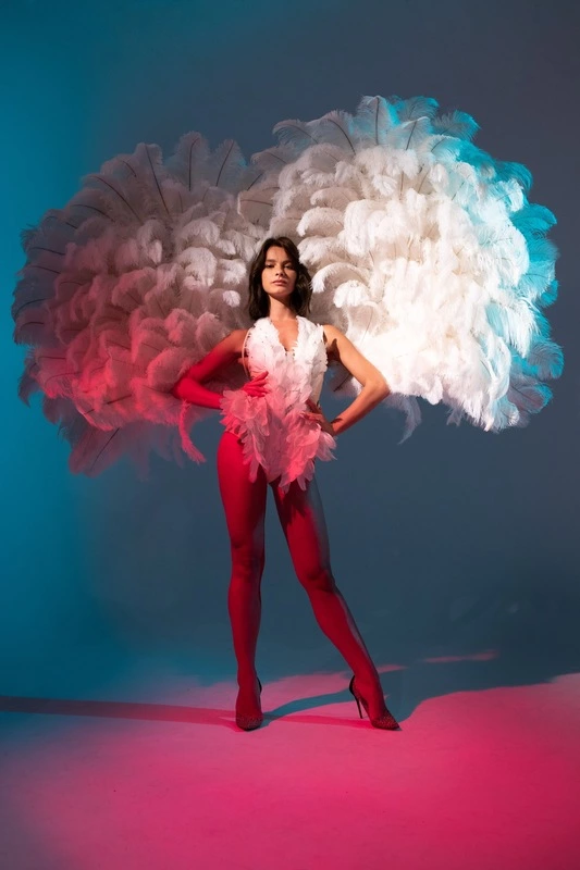 Ailes XXl démontables en plumes d’autruche drabs et blondine recto, verso
