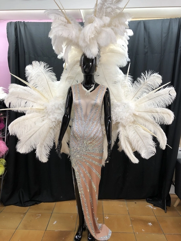 Casque crête en plumes blondines, faisans commun et autruche drabs