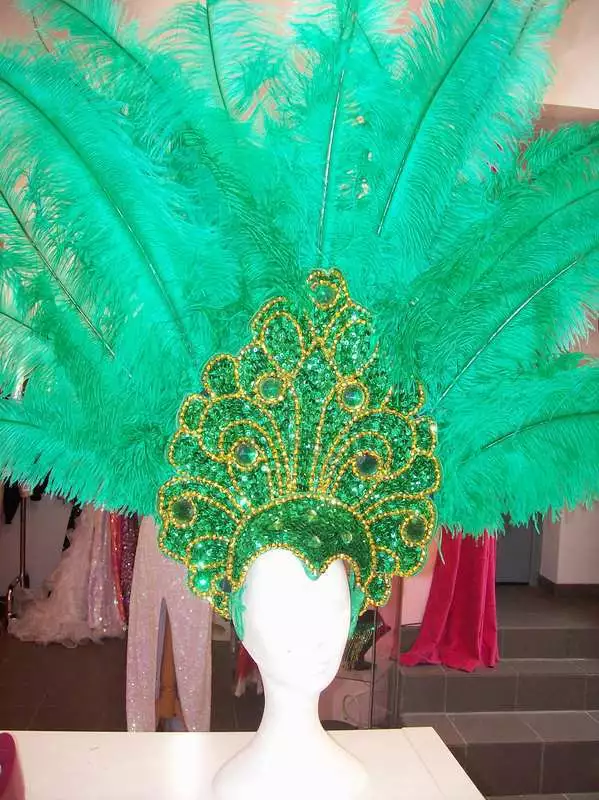 Casque brésilien en plumes d’autruche drabs de couleur verte