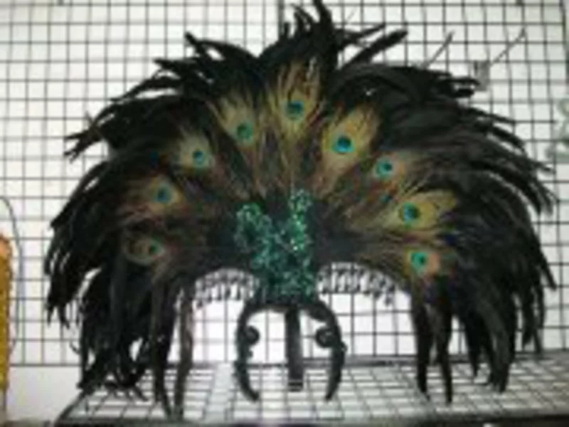 Casque en plumes de paon .