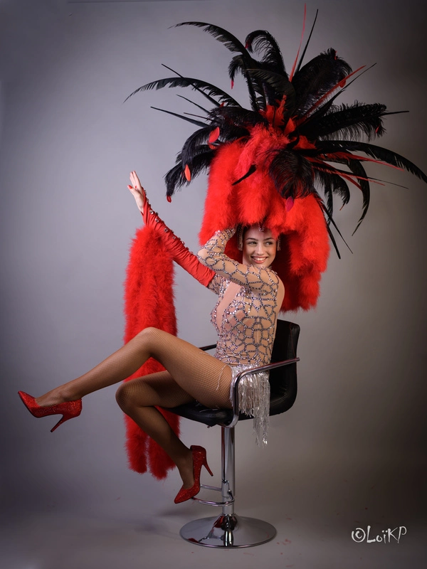 Casque en strass avec piquet en marabouts et second piquet en plumes d’autruche et faisans