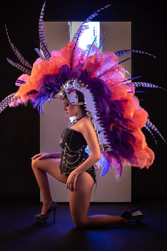 Crête en plumes d’autruche , floss et faisans