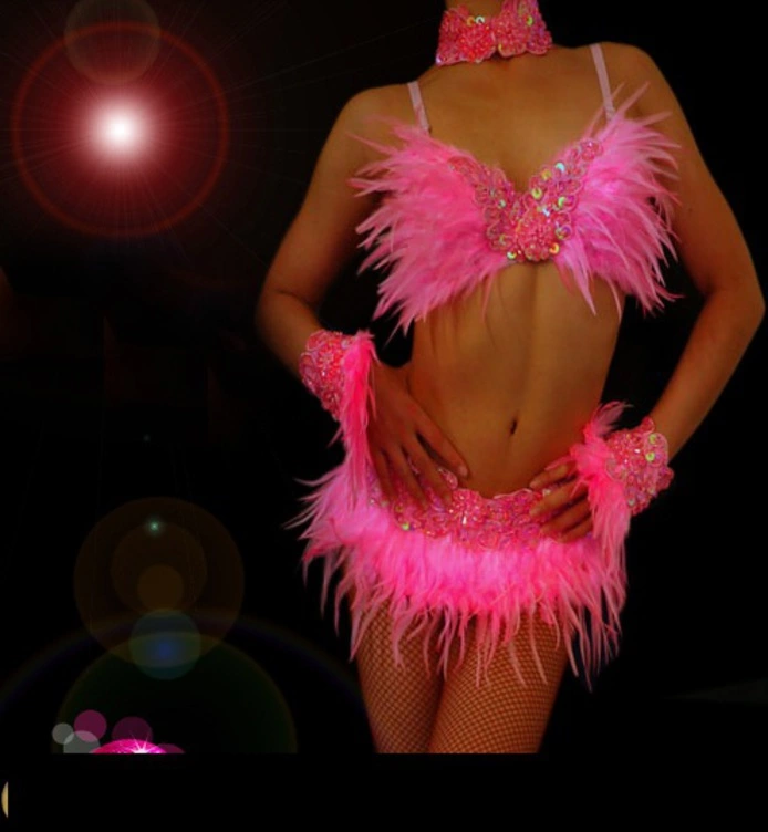 Ensemble 5 pieces composé de 2 manches, collier + top+ bas en plumes