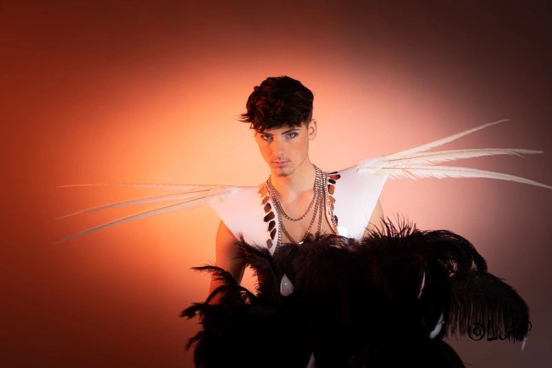 Veste courte homme design avec plumes de faisans et miroirs